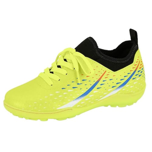 -Solado com travas pequenas: As chuteiras society têm solados com travas mais curtas e múltiplas, geralmente de borracha ou TPU (poliuretano termoplástico). Isso proporciona tração adequada em superfícies de grama sintética sem danificar o campo.