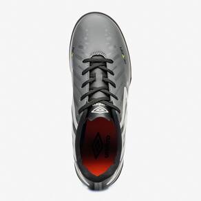 Cabedal confeccionado em material laminado. Possui grafismos em “layers” com aplicação de verniz incolor sobre as artes, Diamante Umbro em destaque na lateral, assinatura do modelo na parte frontal e palmilha interna macia em EVA com tecido forrado. O solado de society HG é composto por blenda de PVC e TPU, que oferece tração e durabilidade.