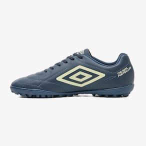 A Chuteira Society Umbro Class Footballer é um modelo consagrado, agora com um visual renovado e aprimorado. Indicada para jogadores de nível intermediário que procuram qualidade e conforto para se destacar nas partidas, esta chuteira combina um design clássico com performance superior. O cabedal é confeccionado em material laminado com textura de couro relax, apresentando aplique de artes gráficas em serigrafia e o logo Diamante centralizado na lateral, com costuras programadas. Possui palmilha interna em EVA e solado de futebol society HG em material PVC, com travas em barra e chevron.