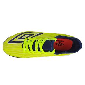 Possui seu cabedal feito em sintético, com grafismos em relevo e logo diamante da umbro na parte do externa do cabedal ainda conta com fechamento em cadarço de amarrar.