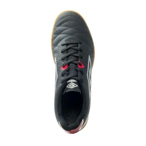 A Chuteira Umbro Attak Eternal Futsal Indoor Masculina Preto Prata Vermelho traz renovação e modernidade ao clássico modelo da Umbro sem perder sua grandiosa essência. O cabedal é construído em material laminado com aplique de alta-frequência, detalhe diferenciado no Diamante Umbro e costura programada na parte frontal, preservando esse detalhe clássico e combinando com serigrafia e detalhe de textura gráfica. Solado de futebol indoor construído em borracha.