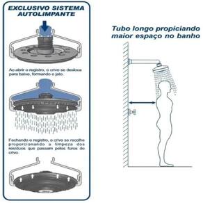 O chuveiro é sinônimo de tecnologia e conforto para o banho. Este chuveiro conta com um sistema autolimpante, que remove as impurezas dos crivos ao ter o fechamento do fluxo da água, permitindo uma perfeita passagem da água a cada novo banho. Além disso, sua cabeça articulável permite o direcionamento do jato dágua, proporcionando maior mobilidade no uso e o jato uniforme proporciona maior bem-estar.