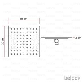 Marca Belcca: Belcca | Bitola: 1/2 | Vazão: 12 litros por minuto | Pressão Mínima de água recomendada: 3 mca. | Pressão Máxima de água Recomendada: 40 mca. | Dimensões: Ducha 20x20x0,5 cm, braço 2x2x40 cm | Material: Ducha em aço inoxidável 304, Braço e acabamento de parede em aço inoxidável 201 | Itens inclusos: 1 Ducha, 1 Braço de 40 cm e 1 Acabamento de parede | Garantia: 90 dias de garantia legal para defeito de fabricação.