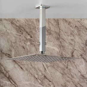 Ducha toda em aço inox na medida de 20x20cm com braço quadrado de 40cm.