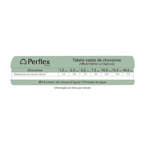 Acompanhando o chuveiro, você recebe um braço, um flexível de 1,75cm, uma ducha manual com suporte de fixação e redutor de vazão. Esse redutor é indicado para uso em pressão acima de 10MCA e reduz até 50% o consumo de água, contribuindo para o meio ambiente e para a economia na sua conta.