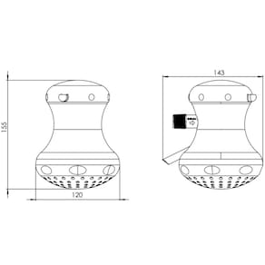 - Altura: 15,5 cm; - Largura: 12 cm; - Diâmetro do espalhador: 12 cm.