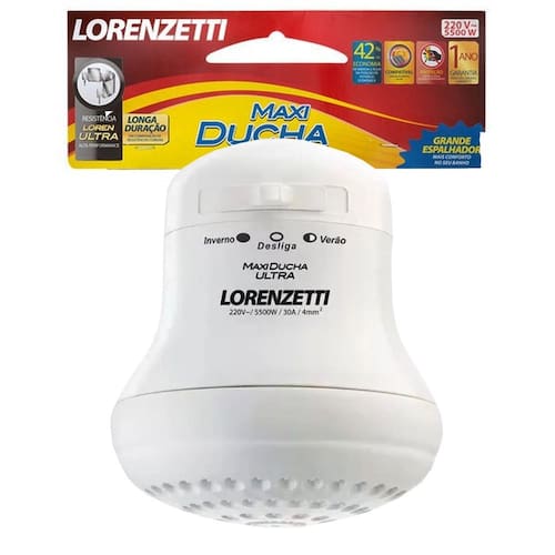 Características do Produto: Sessão: Chuveiro Marca: Lorenzetti Modelo: Maxi Ducha Alimentação: Disponível em 220V Cor: Branco Informações Adicionais:3 Temperaturas Espalhador de grandes dimensões, o que proporciona uma vazão uniforme de água. Potência: 4600W Mangueira com Ducha Manual Compatível com Aquecimento Solar Garantia: 1 Ano (Oferecido pelo Fabricante)Fornecedor - Lorenzetti Não acompanha o braço do chuveiro ** Fotos somente ilustrativas