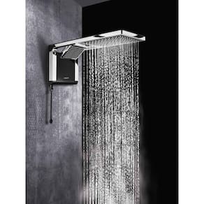 Produto sofisticado que possui acabamento moderno com linhas quadradas, design compacto, similar ao design de duchas frias;