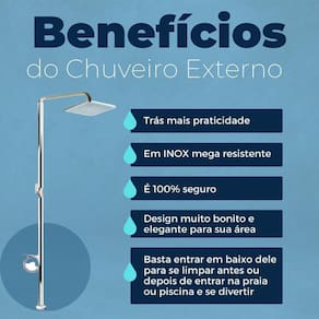 O chuveiro externo em inox é um produto moderno e elegante que foi projetado para oferecer um banho refrescante ao ar livre. Feito com materiais de alta qualidade, o chuveiro é resistente à corrosão e resistente o suficiente para suportar as condições climáticas externas. Com um design sofisticado, ele é ideal para ser instalado em áreas externas, como jardins, varandas e áreas de piscina. Além disso, o chuveiro externo em inox é fácil de instalar. Com o chuveiro externo em inox, você pode desfrutar de um banho refrescante ao ar livre, proporcionando uma experiência única e agradável nos dias quentes de verão. Marca: Loja beluga