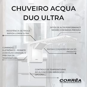O Chuveiro Lorenzetti Acqua Duo Ultra 7800W Branco é um produto sofisticado e elegante, com acabamento detalhes que garantem modernidade, sofisticação e tecnologia para sua casa.