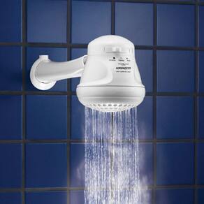 CHUVEIRO MAXI BANHO COM CANO 220V 5500W BRANCO 7530299 LORENZETTIModernidade do design acompanha a Maxi Banho. Com espalhador de grandes dimensões, a Maxi Banho proporciona um banho relaxante, pois oferece uma vazão uniforme de água.