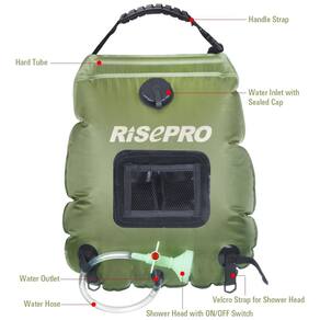 MATERIAIS DE QUALIDADE SUPERIOR A bolsa de banho RISEPRO é feita com materiais ecológicos que são s para a saúde humana. Esta versão deluxe com várias camadas pode aprimorar ainda mais o recurso à prova de vazamentos e torná lo ainda mais durável CABEÇA DE DUCHE AVANÇADA Esta cabeça de chuveiro avançada oferece um interruptor liga, desliga fácil com fluxo de água BAIXO a ALTO. Traz lhe uma experiência de banho muito melhor ALTA CAPACIDADE DE ÁGUA Esta bolsa útil pode transportar facilmente até 5 GALÕES 20 litros de água para tomar banho em áreas remotas Um banho agradável e refrescante em qualquer lugar DESIGN SMART HEAT ABSORBING O material SMART PVC pode absorver eficientemente a energia solar para aquecer a água dentro da bolsa. Aquece a água a 113F 45C em 3 horas com luz solar direta Marca: Não Informado