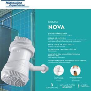 Chuveiro sintex nova ducha 127v - 4400 w Desfrute de um bom banho com a nova ducha da sintex, que possui 3 temperatura à sua escolha. A ducha oferece um excelente custo-beneficio alinhado à 2 anos de garantia do fabrica. Ficha técnica: Nova ducha - 4400w / 127v~ 35a - 50/60hz - 6 mm²/ 8 awg - ip24 disjunto: 40a pressão acionamento: 10 kpa pressão mínima: 10 kpa pressão máxima: 400 kpa Obs: para pressões acima de 80 kpa utilizar redutor de pressão - compatível com dispositivo dr disjuntor diferencial residual - para distâncias acima de 30 metros, utilize condutores de ação maior Importante para instalação e segurança: Antes de instalar, ler atentamente o manual Manual vem na embalagem e é em portugues Comtem: 1 ducha 4400 sintex mangueira com chuveirinho bucha de redução cano para encaixar na parede até a ducha. Ean: 7896697800015