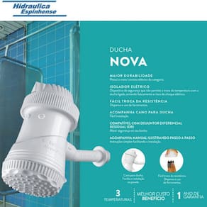 Chuveiro sintex nova ducha 127v - 4400 w Desfrute de um bom banho com a nova ducha da sintex, que possui 3 temperatura à sua escolha. A ducha oferece um excelente custo-beneficio alinhado à 2 anos de garantia do fabrica. Ficha técnica: Nova ducha - 4400w / 127v~ 35a - 50/60hz - 6 mm²/ 8 awg - ip24 disjunto: 40a pressão acionamento: 10 kpa pressão mínima: 10 kpa pressão máxima: 400 kpa Obs: para pressões acima de 80 kpa utilizar redutor de pressão - compatível com dispositivo dr disjuntor diferencial residual - para distâncias acima de 30 metros, utilize condutores de ação maior Importante para instalação e segurança: Antes de instalar, ler atentamente o manual Manual vem na embalagem e é em portugues Comtem: 1 ducha 4400 sintex mangueira com chuveirinho bucha de redução cano para encaixar na parede até a ducha. Ean: 7896697800015