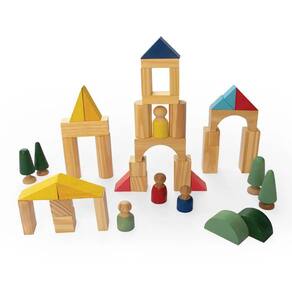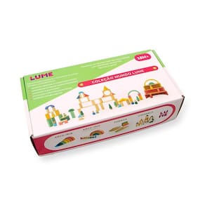 Cidadela - Lume Brinquedos Conjunto com 4 árvores, 4 bonecos e 33 blocos geométricos com diversos tamanhos e formas, para criar uma cidadela, um castelo ou o que a imaginação permitir Durante a brincadeira são desenvolvidas e estimuladas habilidades como: a imaginação, a criatividade, a coordenação motora, a percepção de formas, tamanhos, cores e pesos, e a exploração, organização e planejamento de elementos no espaço. Além disso, é uma brincadeira que permite à criança expressar seus pensamentos e sentimentos, criando histórias e significados. Este brinquedo faz parte da Coleção Mundo da Lume, podendo ser combinado com outros brinquedos e objetos, criando novos cenários e atividades. Material utilizado: madeira maciça. Acabamento: tinta e cera atóxicas. Embalagem: Caixa em cartão duplex e micro-ondulado Kraft com impressões.