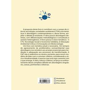 A proposta deste livro é contribuir com o campo de ciência, tecnologia, sociedade e ambiente (CTSA) com temáticas e abordagens contemporâneas e, dessa forma, ampliar o debate já existente. A obra possui abordagens distintas, com diferenciações metodológicas e conceituais e autores heterogêneos. O livro possui 3 eixos temáticos 1) CTS, Tecnologia Social e Economia Solidária; 2) Educação Ambiental Crítica e 3) Inovações em Biotecnologia. Um livro com temática atual e necessária. Em tempos de agravamento da problemática socioambiental suas abordagens nos remetem aos arranjos essenciais para mediação e adequação aos processos de transformação. A C&T não é redentora ou neutra, portanto, para novos modelos de lidar com o conviver coletivo, considerando a sócio e biodiversidade, é preciso que essa seja coerente com o que emerge. A obra, esforço coletivo, se lança no enfrentamento desse complexo debate em abordagens singulares, coesas, pertinentes e diversas.