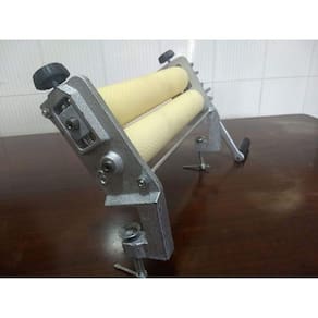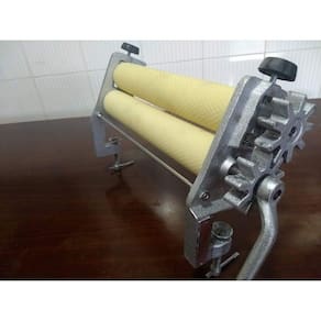 Esse cilindro alveolador tem as laterais, engrenagens e alavanca em ferro maciço, o que permite um trabalho firme, sem oscilação do equipamento. Os rolos alveoladores tem estrutura interna de ferro: são pesados e resistentes. A cobertura é confeccionada com um polímero importado, de alta qualidade e resistência. Essa cobertura tem a capacidade de reproduzir muito bem o formato dos alvéolos, fazendo com que a impressão na lâmina de cera fique excelente.