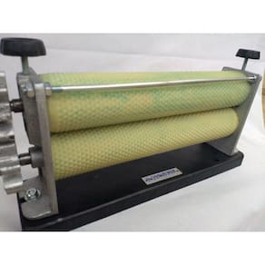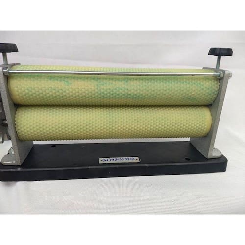 Equipamento utilizado em apicultura. Ao passar a lamina de cera de abelha lisa pelo cilindro alveolador o equipamento faz a impressão dos alveolos (favos) na lamina de cera.