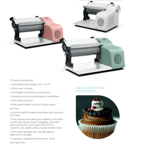 • Lamina 6 kg/h de pasta americana com consumo: 0,27 kw/h.