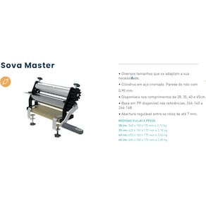 Cilindro Laminador De Massas Manual Sova Master Cromado 28cm Anodilar