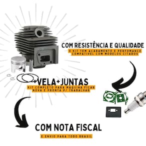 Bjb leia atentamente a descrição antes de comprar o produto - produto de alta qualidade e durabilidade. - aconselha-se um para manutenção do seu equipamento. - imagens meramente ilustrativas. ========================== Kit cilindro para roçadeiras Modelos: 52cc Diâmetro do cilindro: 44mm Compatibilidade: toyama, branco garthen, nakashi, trapp shindaiwa, kawashima, yamasaki e outras marcas. Embalagem: 1 cilindro + 1 pistão + 2 aneis + 1 pino + 2 travas do pino+ 1 kit de juntas + 1 vela de ignição l7t ========================== A os produtos são novos R: todos os produtos da são novos com do seu fabricante. D como são realizadas as entregas R: sim, desde que more perto de nossa loja física, localizada em capital. F os produtos possuem R: todos produtos possuem direto com o seu fabricante de no mínimo 3 meses de acordo com a lei. Esse prazo estará no anúncio. G -aceitamos troca de dados de faturamento após compra R: confira o seu endereço de entrega cadastrado, pois não aceitamos alterações do mesmo após a compra. Marca: Bjb