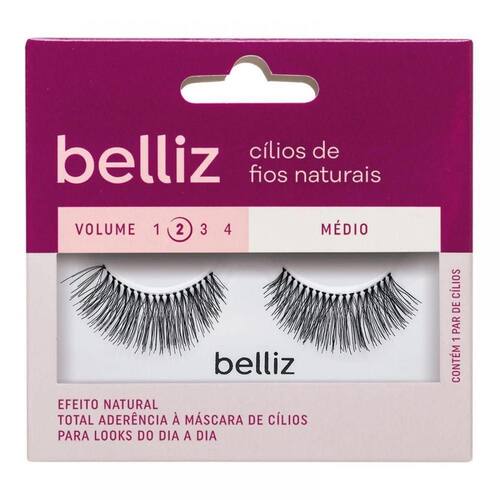 Cilios Belliz Naturais Vol. 2 Medio - 107 Os Cílios Postiços Naturais Belliz são ideais para quem deseja um efeito mais natural em looks do dia a dia ou em festas. Feitos com cabelo humano esterelizado, possuem diferentes volumes e comprimentos, oferecendo diversos efeitos. Retire os cílios postiços do estojo delicadamente com o auxílio de uma pinça. Se necessário, corte-os para ajustá-los ao tamanho de seus olhos. Aplique os cílios postiços rente à raiz de seus cílios naturais. Segure por alguns segundos até que a cola seque. Aplique demaquilante bifásico em uma haste flexível com ponta de algodão e passe-a suavemente na linha dos cílios. Comece a descolá-los pelo canto externo. Segurança: Produtos e com ;. Rapidez: Embalamos e mos para o correio/transportadora em menos de 24h úteis;. Suporte: Equipe dedicada para sanar todas as suas dúvidas;. Satisfação: Ótima avaliação dos nossos clientes.