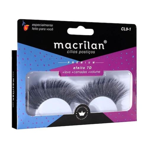 Cílios Postiços Premium Efeito 7D CL9-1 Macrilan. O Cílios Postiços Premium Efeito 7D CL9-1 Macrilan foi feito para você que ama um olhar marcante e arrasador. Os cílios são sintéticos e produzidos manualmente, por isso eles dão um efeito super natural.