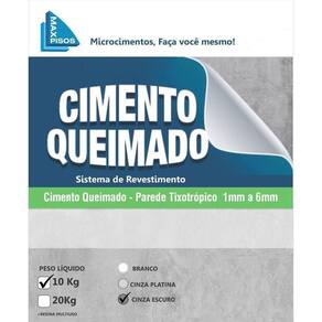 Cimento Queimado Parede Max Pisos Cinza Escuro 10kg Cimento Queimado Parede Tixotrópico Maxpisos Cinza Escuro 10kg produto em pó, ao adicionar água torna-se argamassa tixotrópica contendo cimento portland cargas minerais e aditivos. Fácil aplicação com simples rolo de pintura e alisar com desempenadeira de aço preferencia inox com cantos arredondados acabamento liso sem lixar alisado com desempenadeira efeito manchado do cimento industrial sem lixamento sem pó sem fissuras sem juntas ideal para aplicar em paredes, tetos, espelho de escada, banheiro, concreto, madeira, cerâmica, porcelanato, porcelanato líquido, epóxi. Uso interno e externo incluso 0,5kg Resina Multiúso acrílica acabamento fosco, acetinado e brilhante. + Corante Preto em Pó: 2un de 50g. Marca: Max Pisos