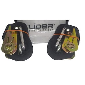 Os conjuntos de Amarração são ferramentas indispensáveis no transporte de equipamentos e materiais em cargas para a fixação.1 Kit par Completo com Cinta Azul + Catraca + Gancho MOSQUETÃOCinta Cross com catraca de 25mm de largura e com 2,30 metros de comprimento e gancho tipo S nas extremidades para amarração de cargas em geral.Para transporte de carga seguro, devemos primeiro compactar a carga a ser amarrada, preenchendo os espaços livres na carroceria do veículo, usando, por exemplo, paletes, assim ajudando a evitar o escorregamento da carga.- Total segurança no transporte de motos, barcos e jets;- Comprimento de 2,30 metros / Largura 25 milímetros;- Ganchos emborrachados anti risco;- Trava rápida, fácil manuseio;- Cinta fabricada em polipropileno;- Produto 100% nacional;- Costuras reforçadas;- Vendido somente em pares;- Capacidade 400 kilos;- Fabricante: Líder Esticadores. Marca: Lider Esticadores