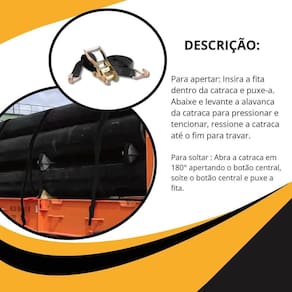 Cada cinta de catraca é capaz de suportar um peso máximo de 1 tonelada. Isso significa que você pode confiar neste produto para amarrar e transportar cargas pesadas com facilidade. Além disso, as cintas são fáceis de usar, permitindo que você amarre e desamarre suas cargas de forma rápida e eficiente.