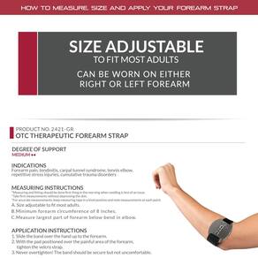 - OTC modelo da marca 2421-GR; alça de cotovelo de tenista no antebraço; design anatômico suporta mobilidade para alívio da dor