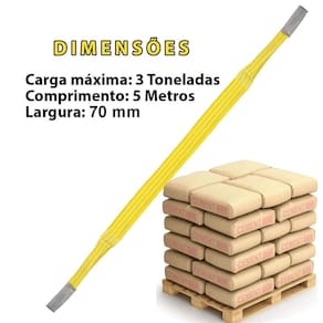 Características Cor: amarelo Material: polyester Peso máximo: 3 toneladas Fator de segurança: 4:1 Muito resistente