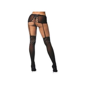 Cinta Em Renda Com Ajuste E Meia Preta - Yaffa Lingerie