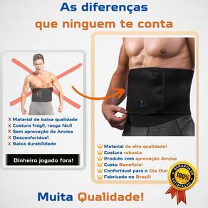Benefícios da Faixa Estética: - Alivio de dores lombares. - Possui laminado plástico na parte interna que intensifica o calor na região abdominal, facilitando a absorção de produtos cosméticos utilizados nessa região, principalmente géis redutores. - Utilize na prática de esportes e exercícios físicos. - Na cor preta apenas. Qual tamanho comprar P - 80cm de largura. M - 100cm de largura . G - 120cm de largura . GG - 130cm de largura. Composição: 70% clorofibra, 15% algodão, 10% elastano e 5% outras fibras. Forma de uso / Colocação: 01 - Envolva o tronco com a faixa posicionando a parte elástica de forma centralizada nas costas, na altura do abdômen. 02 - Fixe o fecho de contato no tecido aveludado da faixa utilizando a compressão necessária e adequada para o caso. Embalagem: Contém 1 uma unidade. ANVISA: AF Nº 8.04.537-8 Responsável Técnica: Dra. Vanessa Dantas Aguiar - CREFITO-3 Nº 39345-F CREFITO: RE Nº 5435-SP do vendedor: 3 meses Marca: Não Informado Ean: 7893251581601