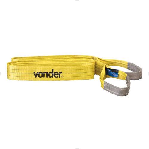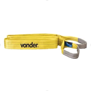 Ref.: 8014090203. Marca: Vonder. Carga de trabalho posição vertical/direta: 3,0 tf. Carga de trabalho posição forca/laço: 2,4 tf. Carga de trabalho posição cesto/paralela: 6,0 tf. Carga de trabalho posição cesto/angular até 45º: 4,2 tf. Carga de trabalho posição cesto/angular 46° até 60º: 3,0 tf. Material da cinta: Poliéster. Cor: Amarela. Largura da cinta: 90 mm. Comprimento total da cinta: 2,0 m. Fator de segurança: 7:1. Segue norma: ABNT NBR 15637-1. Massa aproximada (peso): 1,194 kg.
