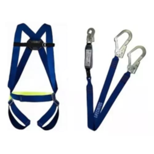 LIFE-6002 Descrição do produto: • Talabarte de segurança em "Y" com absorvedor de energia, confeccionado em fita na cor azul; composição: poliéster primária de 45mm de largura. Dispõe de 3 mosquetões dupla trava confeccionados em aço, sendo 2 com abertura de 55 ± 3mm classe A, e 1 com abertura de 17 ± 3mm, classe T. Comprimento máximo de 1,45cm. Conector classe A Fita de poliéster 45mm NBR 15834/2020 NBR 14629/2020.Acessório utilizado para proteção contra quedas em movimentações por torres, andaimes, estruturas metálicas, escadas marinheiro, etc. Utiliza-se em conjunto com os cinturões paraquedista. O seu sistema de absorvedor de energia possibilita a redução de possíveis impactos sobre o corpo do trabalhador ou sobre o sistema de segurança.