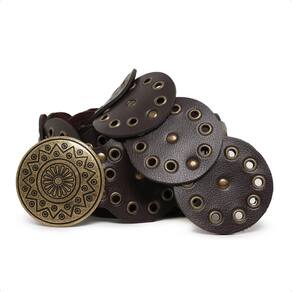 Cinto Boho Chic Feminino Estilo Ocidental Redondo Western Fivela Ouro Velho Moderno Tendencia Festa - Marrom Cacau - GG