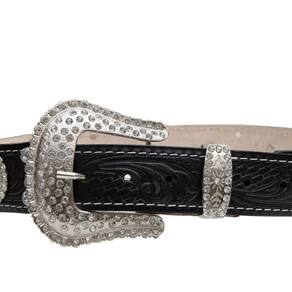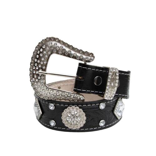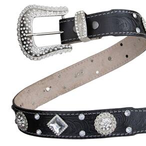 Cinto Couro Feminino Country Garota Rodeio Aplicaçao Strass Brilho Fivela Redonda - Preto - 105