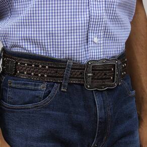 O Cinto de Couro da marca Cow Way é uma peça de vestuário excepcionalmente elegante e única. Feito de couro de alta qualidade, este cinto é durável e resistente, proporcionando um ajuste confortável e seguro para o usuário. O couro é entalhado com detalhes impressionantes que adicionam um toque artístico e rústico ao cinto. O destaque do cinto são as margaridas de metal em relevo que são fixadas ao longo do couro entalhado juntamente com os rebites. As margaridas são meticulosamente trabalhadas com detalhes intrincados e são feitas de um metal resistente que é altamente durável. Esses elementos metálicos adicionam um toque de elegância e brilho ao cinto, elevando sua aparência para um novo patamar. Com um fecho de fivela ajustável, o cinto de couro da Cow Way é um acessório versátil e prático para qualquer guarda-roupa.