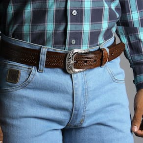 Cinto de Couro Marrom Bordado Cow Way 32921 - Marrom - 85