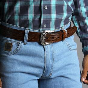 Cinto de Couro Marrom Bordado Cow Way 32921 - Marrom - 110