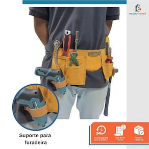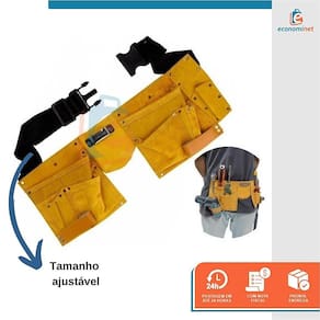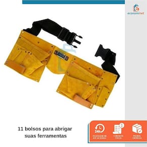 CARACTERÍSTICAS TÉCNICAS: Material: Couro Medidas: Altura: 18,5cm x Comprimento: 45cm Quantidade de bolsos: 11 Suporte para furadeira Tamanho ajustável Peso: 240g Marca: Starfer Ref: 3575128