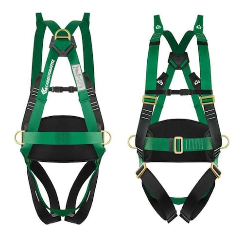Produto: Cinto de segurança tipo paraquedista sem talabarte - CG 795EP Marca: Carbografite Descrição: O Cinto de segurança tipo paraquedista sem talabarte CG 795EP da Carbografite é fabricado em fita de poliéster. Possui ajustes através de fivelas duplas de aço, duas localizadas no suspensório, uma na cintura e duas nas pernas e três meia argolas em aço forjado bicromatizado, uma dorsal para retenção de queda e duas laterais para posicionamento. Além disso, o CG 795EP conta com duas alças nos ombros para espaço confinado e duas alças no peitoral para ancoragem frontal. Características: • Proteção subpélvica • Indicador de queda • Almofada acolchoada na cintura em material respirável.Especificações: Tiras em: poliesterPeso suportado: 10 0kg incluindo vestimentas, EPI’s e ferramentas do usuário Marca: Não Informado