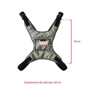 Fácil de prender com duas fivelas de engate em cada lado, o peitoral do cinto é acolchoado para maior conforto. Suas alças ajustáveis chegam ao comprimento máximo de 182 centímetros.
