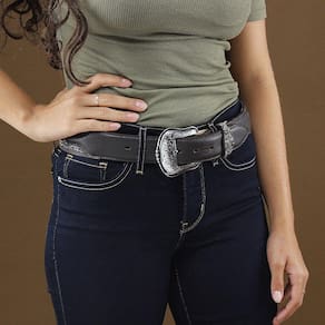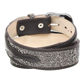 Cinto Feminino Cow Way em Couro e Gliter Café 31375 - Marrom - 100