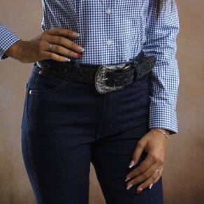 Um Cinto feminino de alta qualidade da nossa marca exclusiva Cow Way, este fabricado em couro na cor Preto seguindo o design e tendências atuais, possui correia totalmente detalhada com pedrinhas strass com 3,7cm de largura no centro e nas ponteiras. Este modelo vem costurado ao longo da superfície. Tanto a fivela estilizada como o passador são removíveis, podendo ser trocados pelo usuário a qualquer momento. Uma peça que tem bastante personalidade e que realmente irá te surpreender!