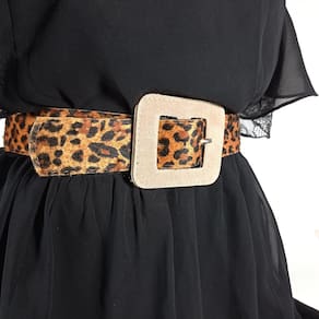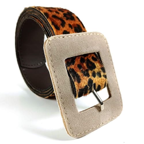 Cinto Feminino Largo Animal Print Onça Com Fivela Quadrada