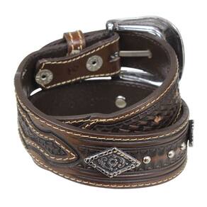 Cinto Infantil da nossa marca exclusiva Cow Way, fabricado em couro na cor Marrom seguindo o design e tendências atuais, possui correia com pontas totalmente bordada (entalhada) com apliques no centro, com 3,6cm de largura no centro e 3cm nas ponteiras. Tanto a fivela estilizada como o passador são removíveis, podendo ser trocados pelo usuário a qualquer momento.