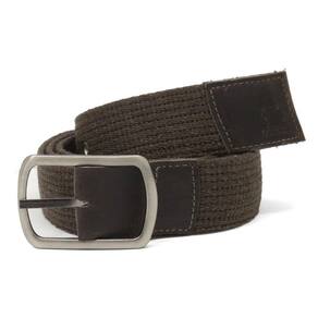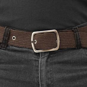 Cinto Masculino Lona Gorgurao Detalhe Couro Liso Ajuste Fivela Metal Casual Alta Qualidade - Marrom - 105