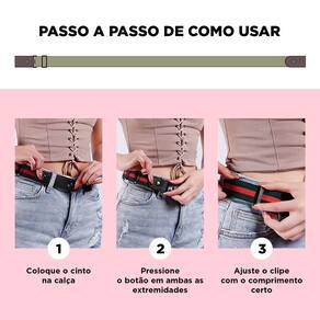 -Por ser um cinto de elástico, depois de ajustado, não será necessário ficar regulando o tamanho, mesmo depois de uma refeição.
